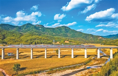 9月28日,列车行驶在沈佳高铁沈白段上。 陈 明摄