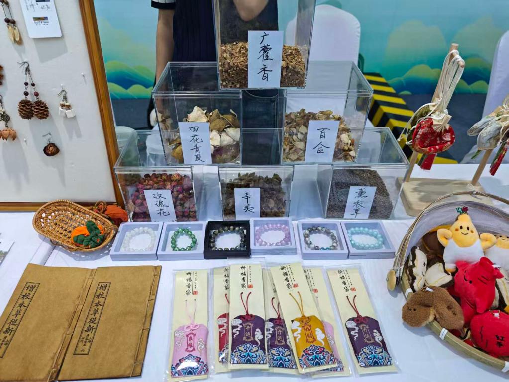 中医药文化市集上展示的各类中医药文创产品。新华社记者 张昕怡 摄