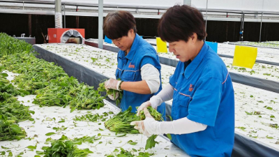 走进浙江省余姚市梁弄镇横坎头村“红芯植物工厂”的种植大棚,阵阵蔬果清香扑面而来,阳光透过棚顶的薄膜洒下,无土栽培架上一簇簇蔬果长势喜人。
