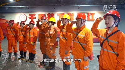 “我志愿加入中国共产党,拥护党的纲领,遵守党的章程……”6月30日,在铜陵有色金属集团股份有限公司冬瓜山铜矿负930米中段的党建文化阵地,9名新党员在支部书记的带领下庄严宣誓。