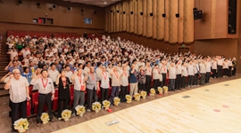 “往年,‘光荣在党50年’纪念章多由湖西街道各社区举办仪式颁发。”湖西街道党工委副书记苏芳说,“今年,我们扩大规模,让这份荣誉更显庄重。经过调研发现,今年符合颁发条件的老党员们大多身体康健。因此,我们邀请27位老党员参加这次颁发仪式,并在长影音乐厅中安排了一堂‘音乐党课’。”