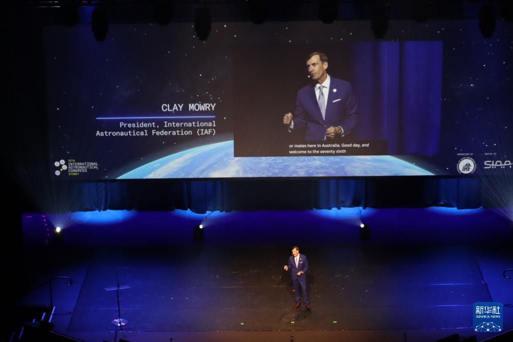 9月29日,国际宇航联合会主席克莱·莫里在澳大利亚悉尼举办的第76届国际宇航大会开幕式上致辞。新华社记者 李晓渝 摄