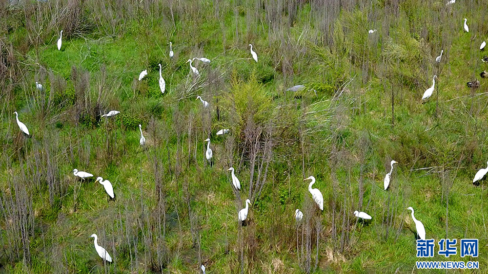 连日来,受强降雨影响,湖北省十堰市郧阳湖国家湿地公园水位回升,公园内出现较多岛屿和浅滩,吸引大批鹭鸟来此栖息觅食。湿地公园为南水北调中线工程核心水源涵养地,生态水域面积1743.6公顷,其中湿地面积1404.09公顷。