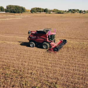 9月29日,在内蒙古自治区兴安盟扎赉特旗音德尔镇,大型机械在收获大豆(无人机照片)。