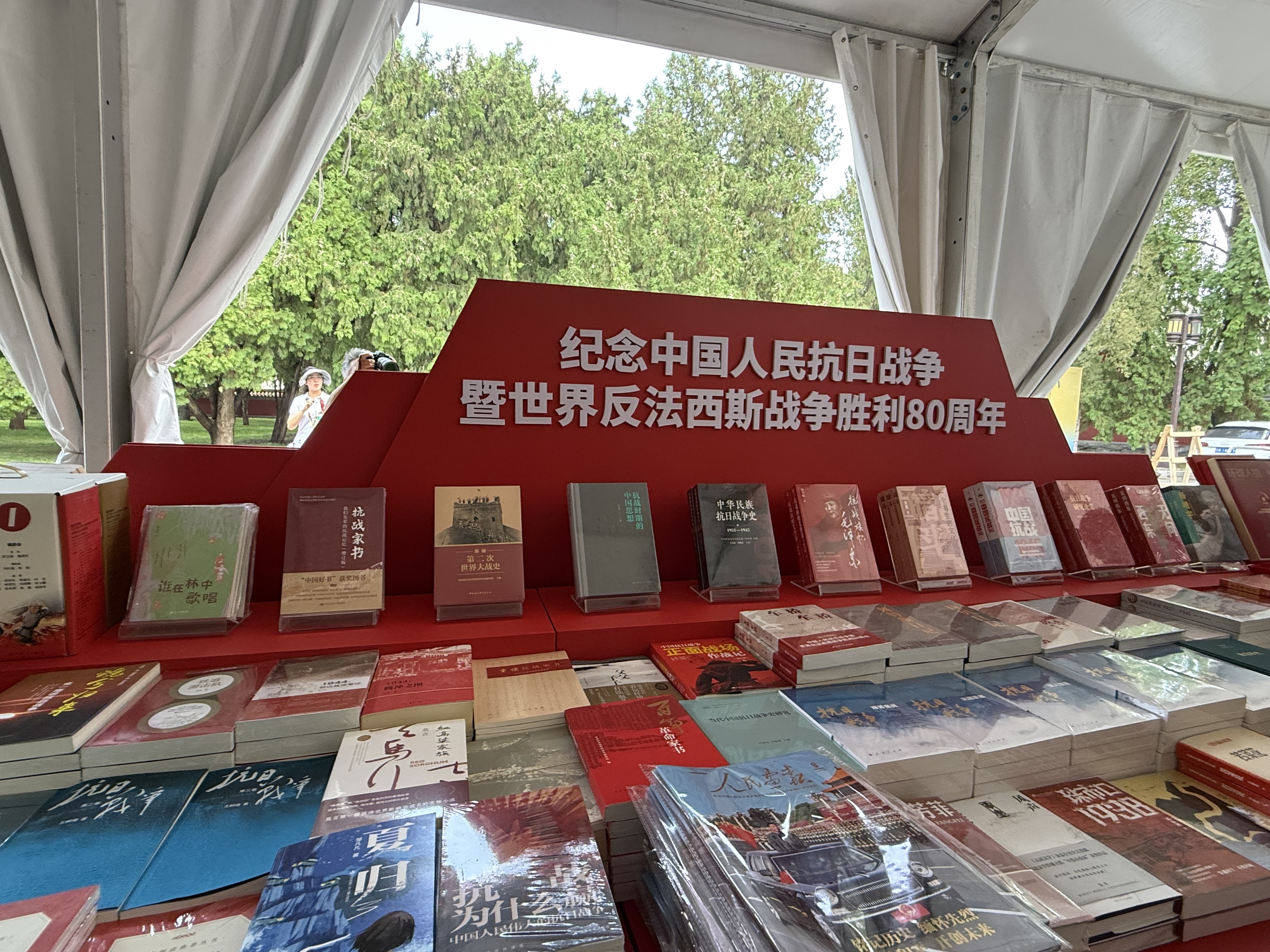 书市设置的纪念中国人民抗日战争暨世界反法西斯战争胜利80周年专台。新华网 李欣 摄
