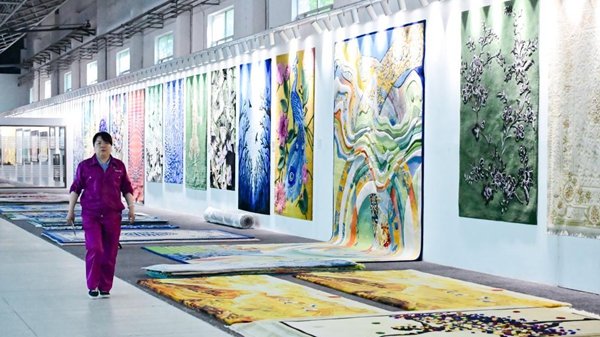 车间内织机声此起彼伏,一幅幅挂毯上,青海湖畔的水鸟振翅欲飞,雪豹的皮毛纹理栩栩如生……日前,“活力中国调研行”记者团走进青海圣源地毯集团有限公司,面对眼前的作品,记者不禁感叹:“真不敢想象,这样精美的图案竟是用毛线一点点织出来的。”