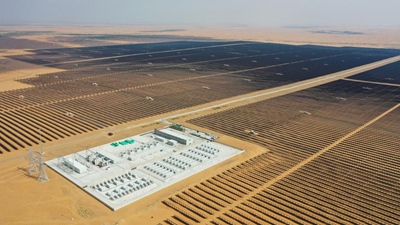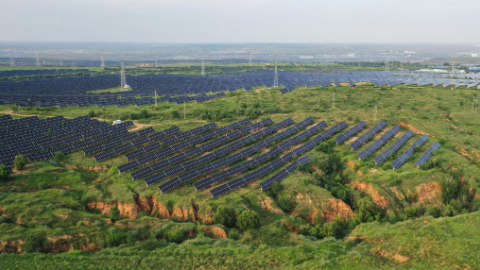 沙漠深处,一张张蓝色光伏板如波浪般向天际延伸,它们静静地吸收着炙热的阳光,将不毛之地变成巨大的“绿色电站”。