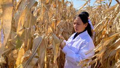 盛夏时节,辽宁省阜新市阜新蒙古族自治县阜新镇桃李村的玉米长势良好,大部分已经及腰。身着白大褂的张丽莉对农田情况了如指掌,自如穿行在田垄间,进行观察监测。